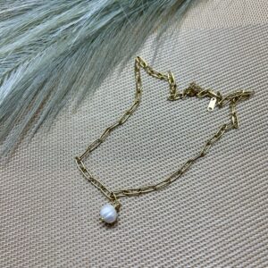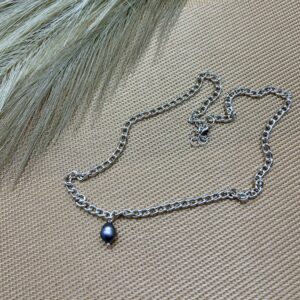 Silver Paper Clip Chain & Peacock Pearl Necklace