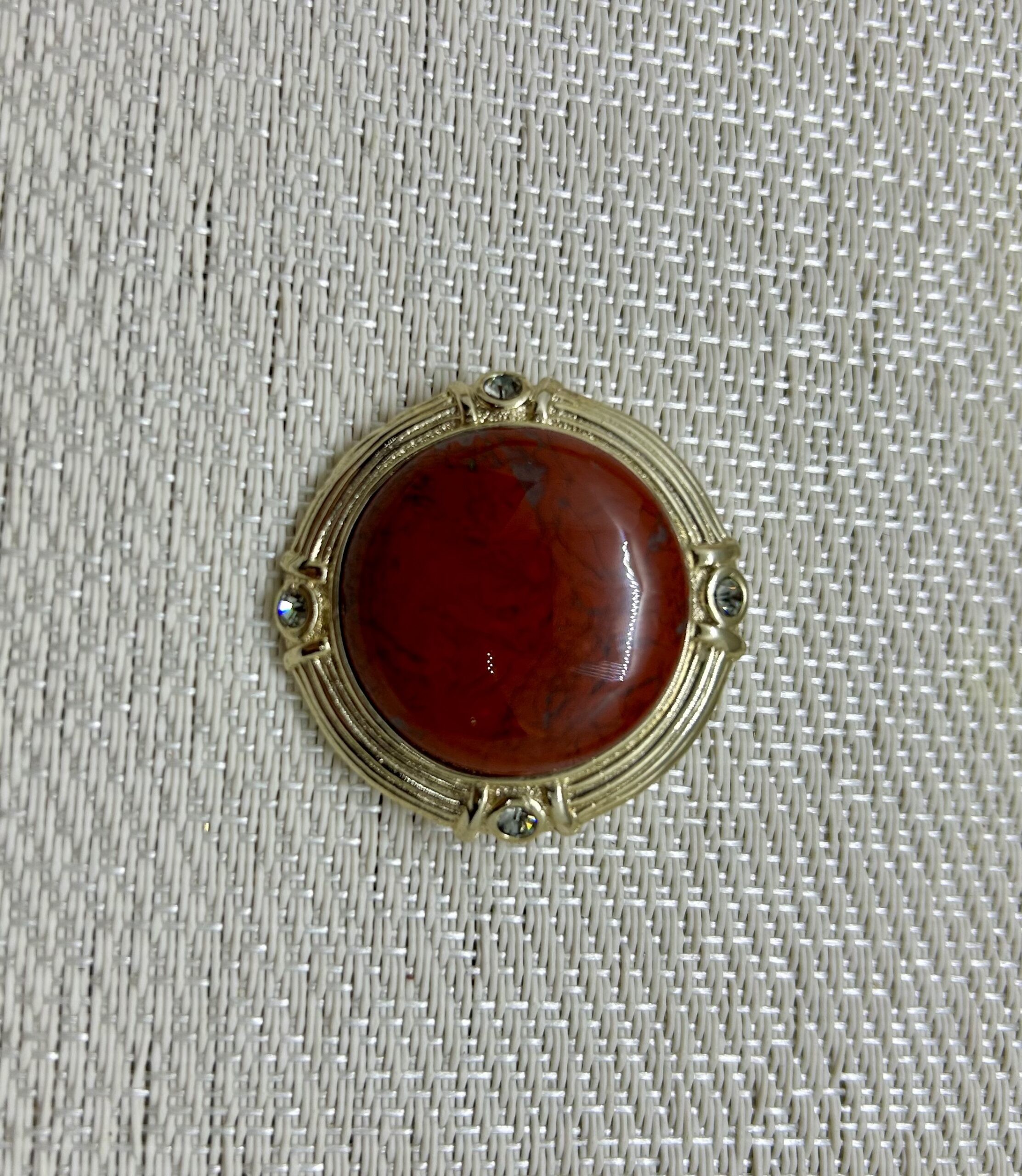 1980’s faux carnelian gold tone brooch. In excellent condition.