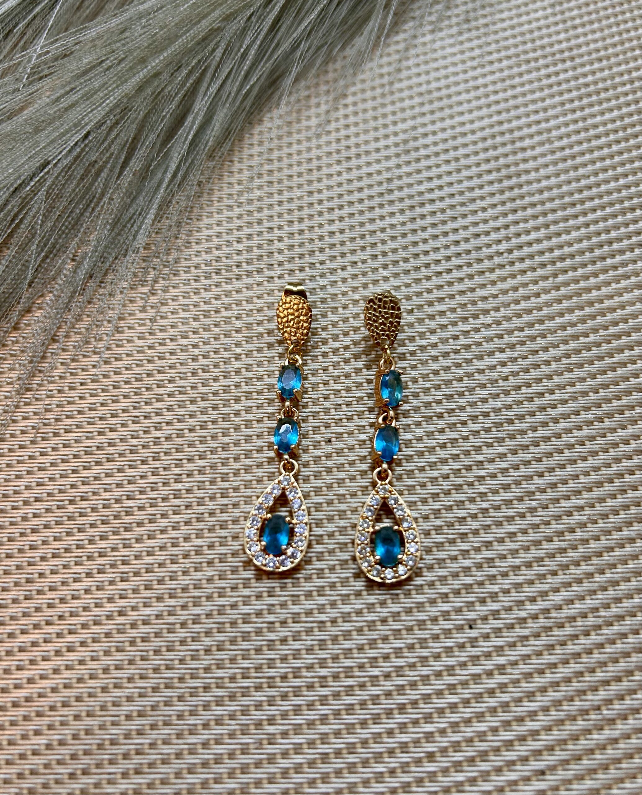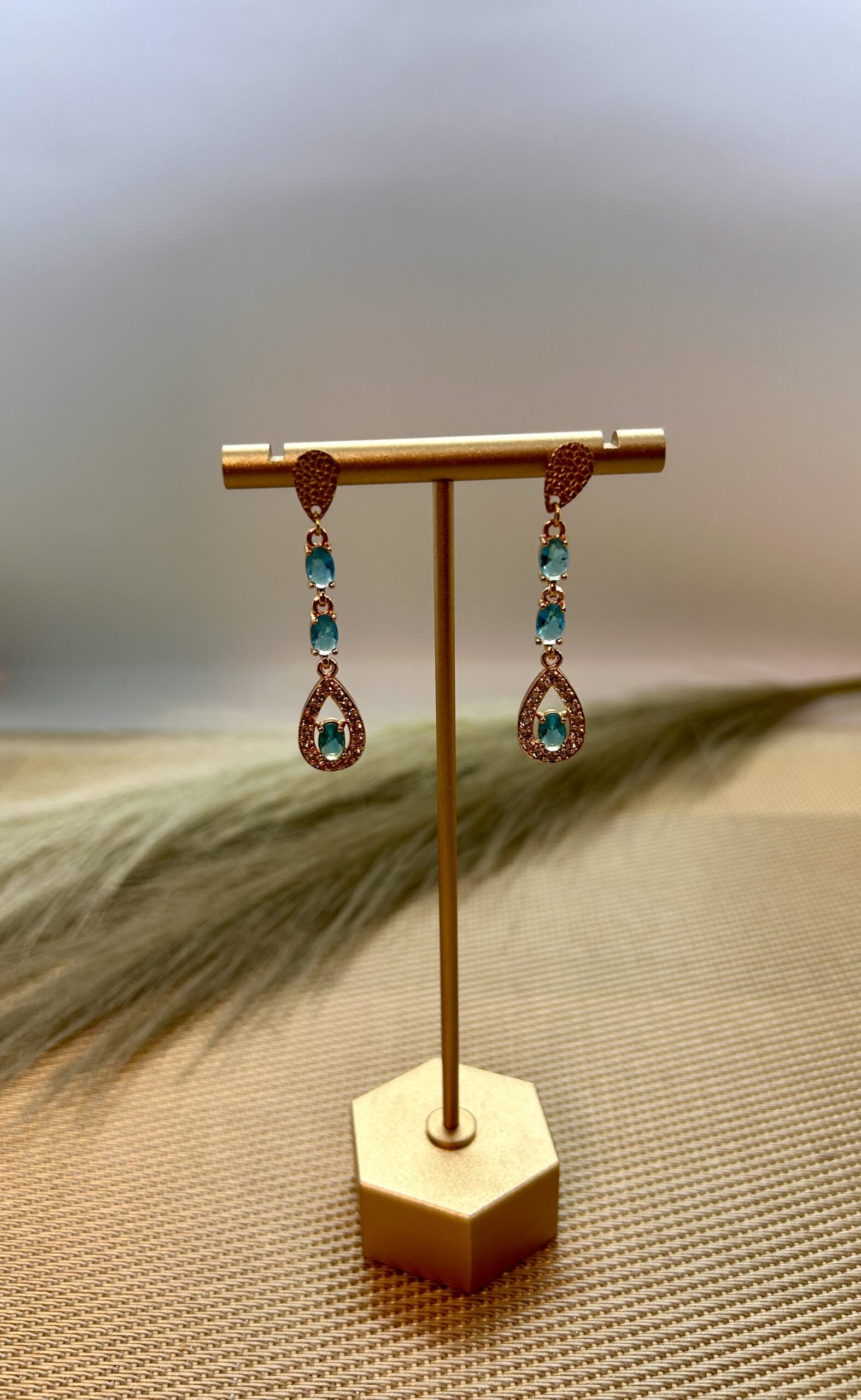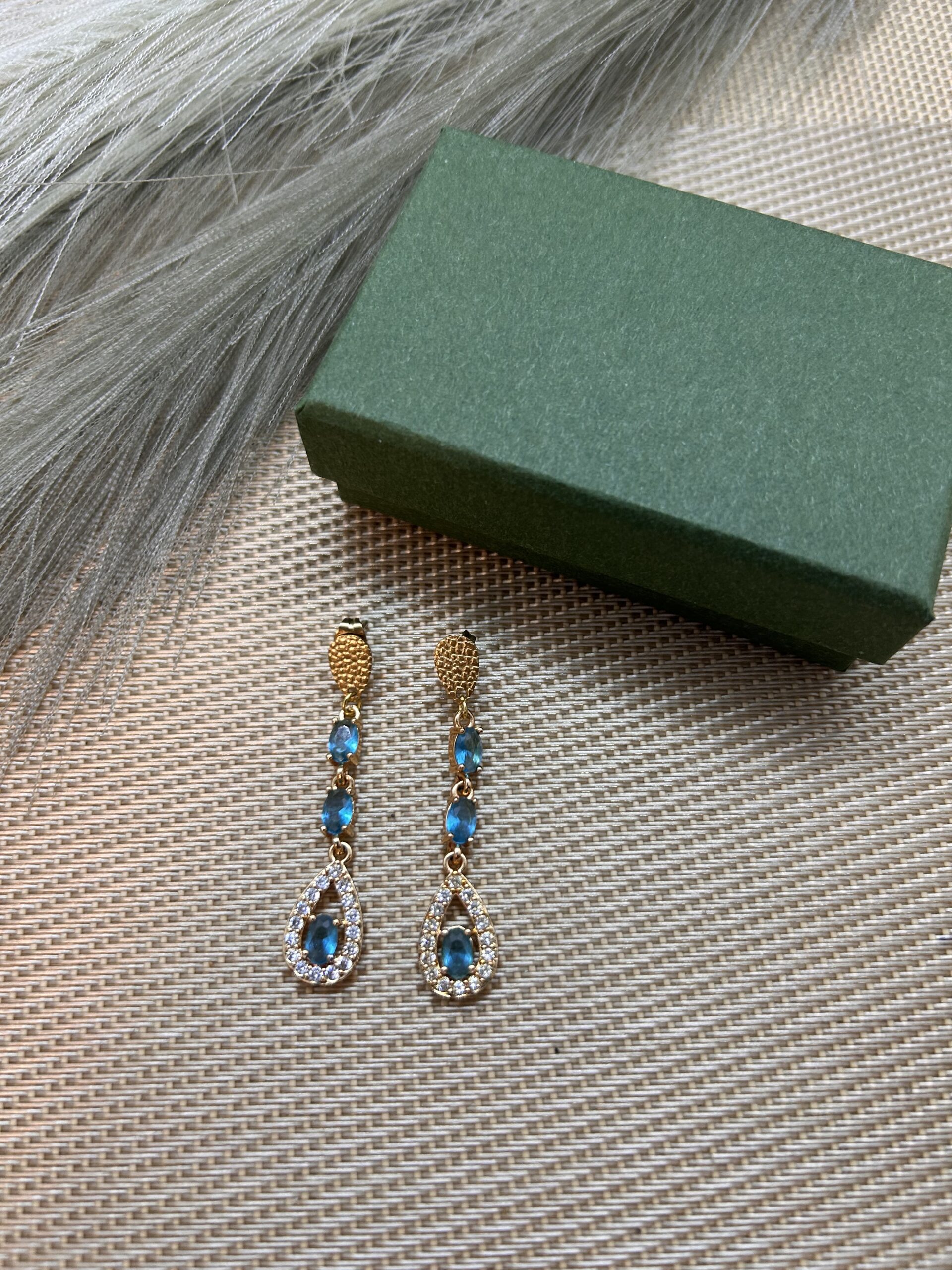 Beautiful vintage aquamarine and clear colour rhinestones set in gold plated settings with new gold plated earring stud posts fitted. Beautiful earrings