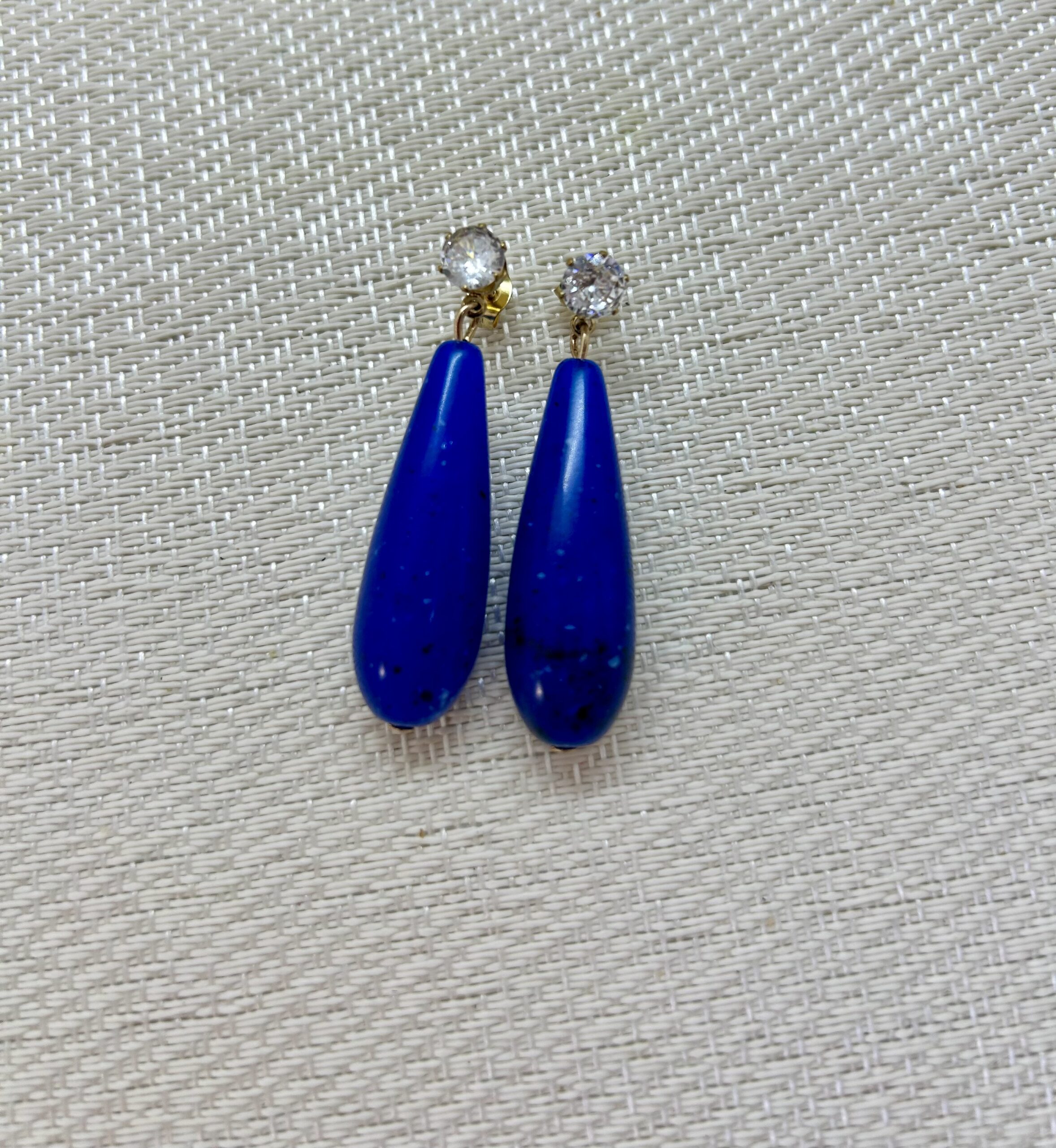 Cobalt blue drop on gold plated diamanté stud post. Lightweight and so comfortable to wear.