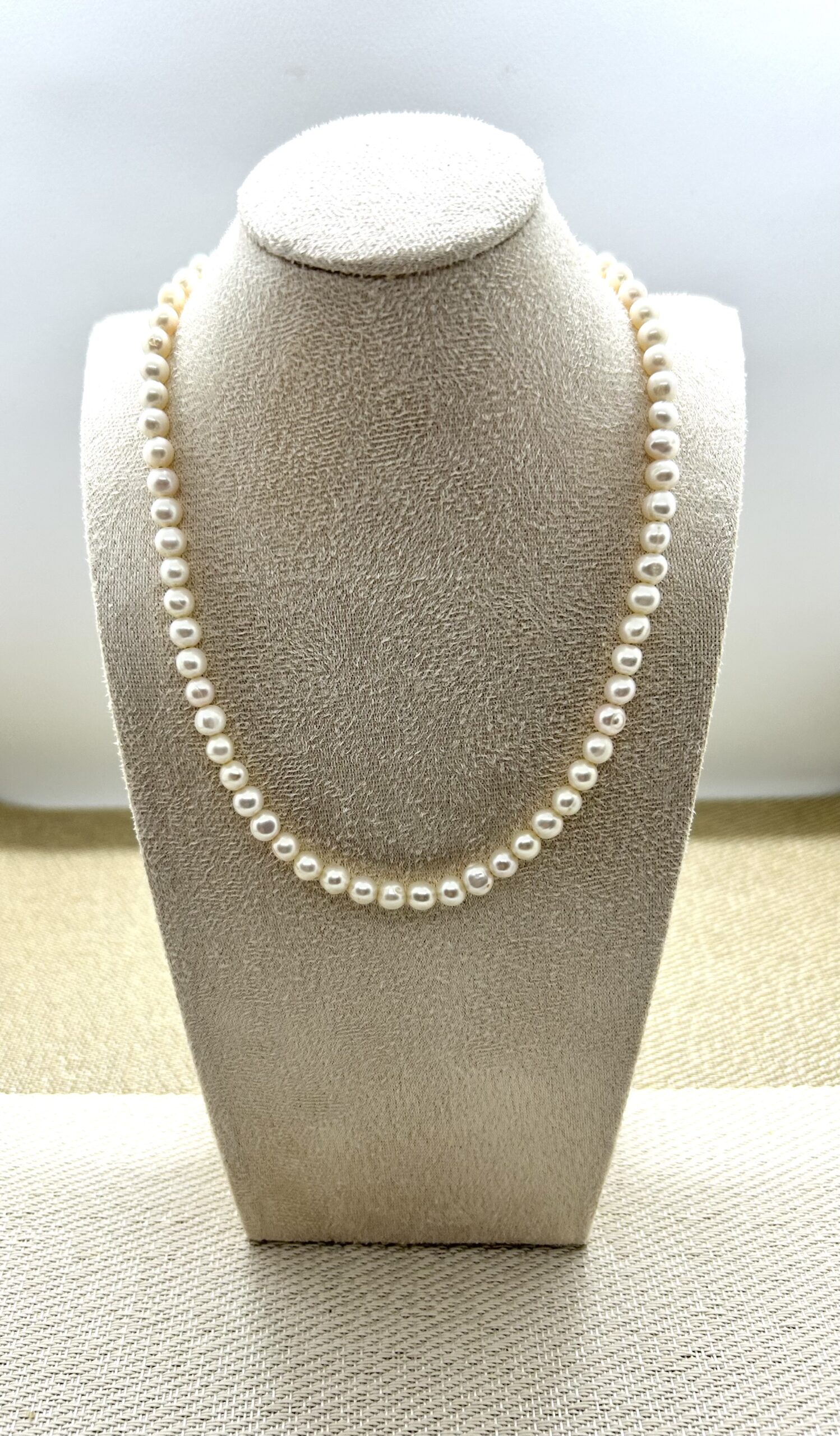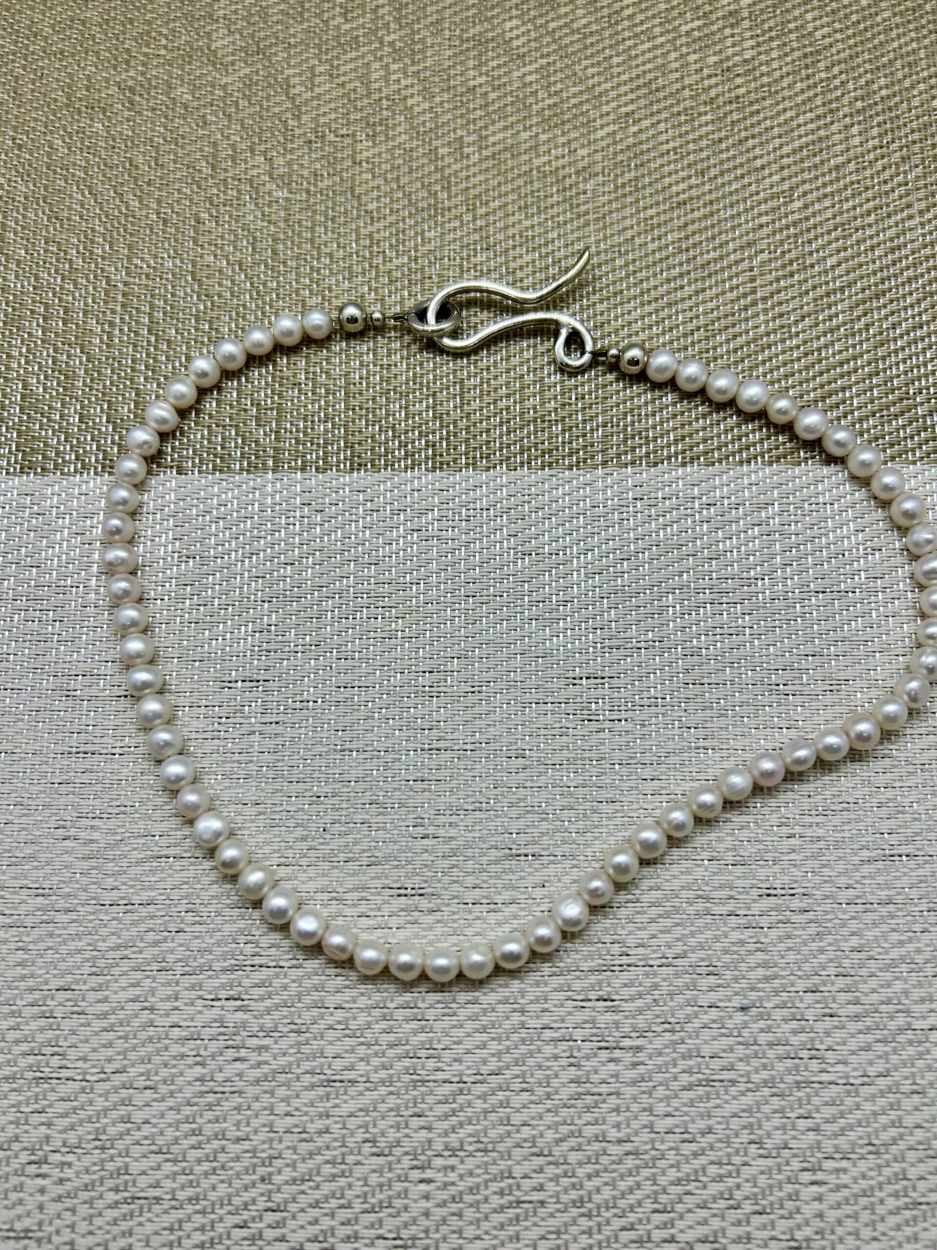 Genuine freshwater pearl necklace with silver tone s hook clasp. A timeless and elegant piece.