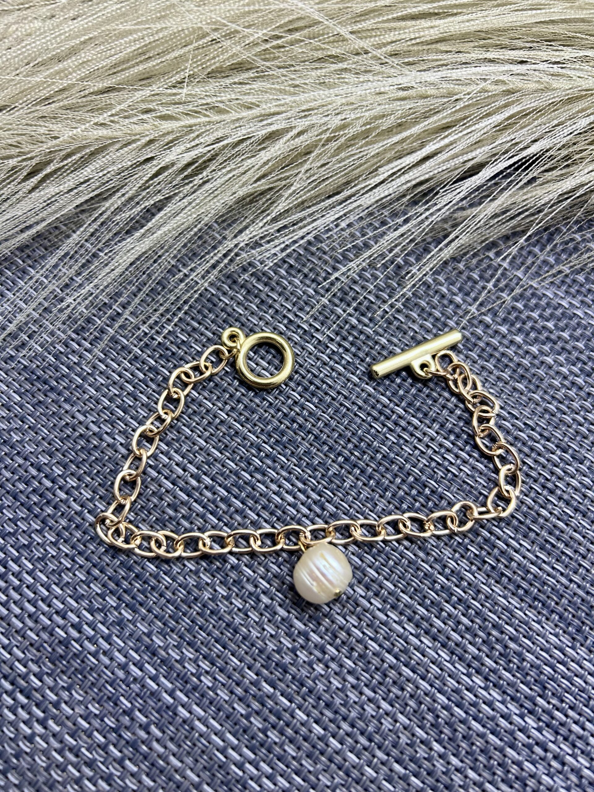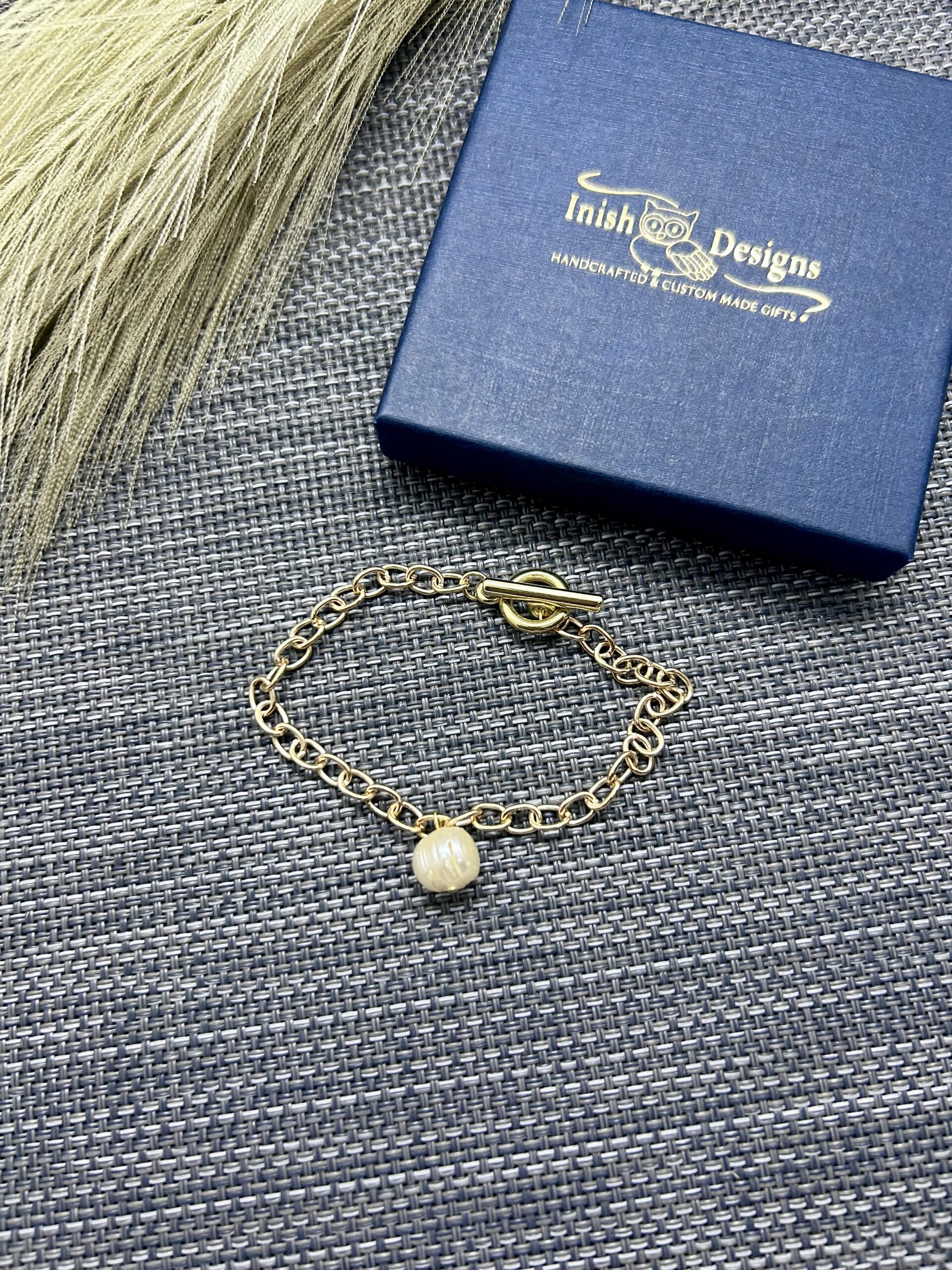 Gold plated Chain bracelet with toggle clasp and genuine Freshwater Pearl.