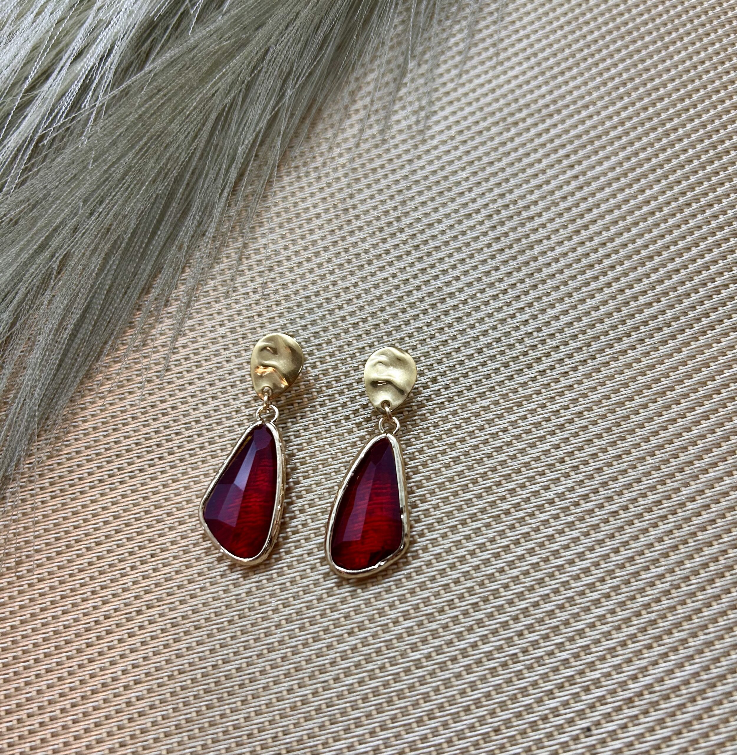 Red crystal bead surrounded by gold plate. Only one available