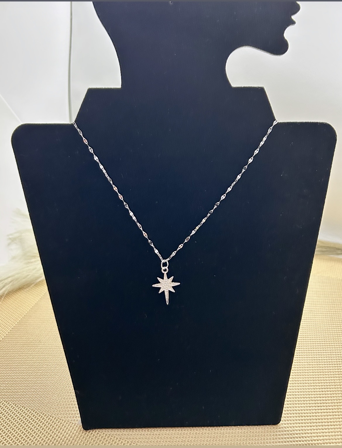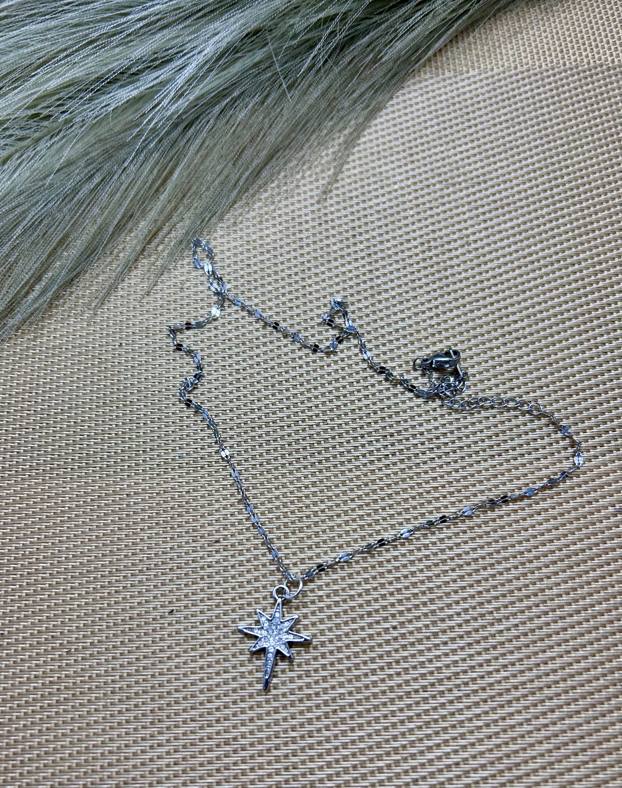 Stainless steel silver plated North Star pendant necklace. A perfect little gift.