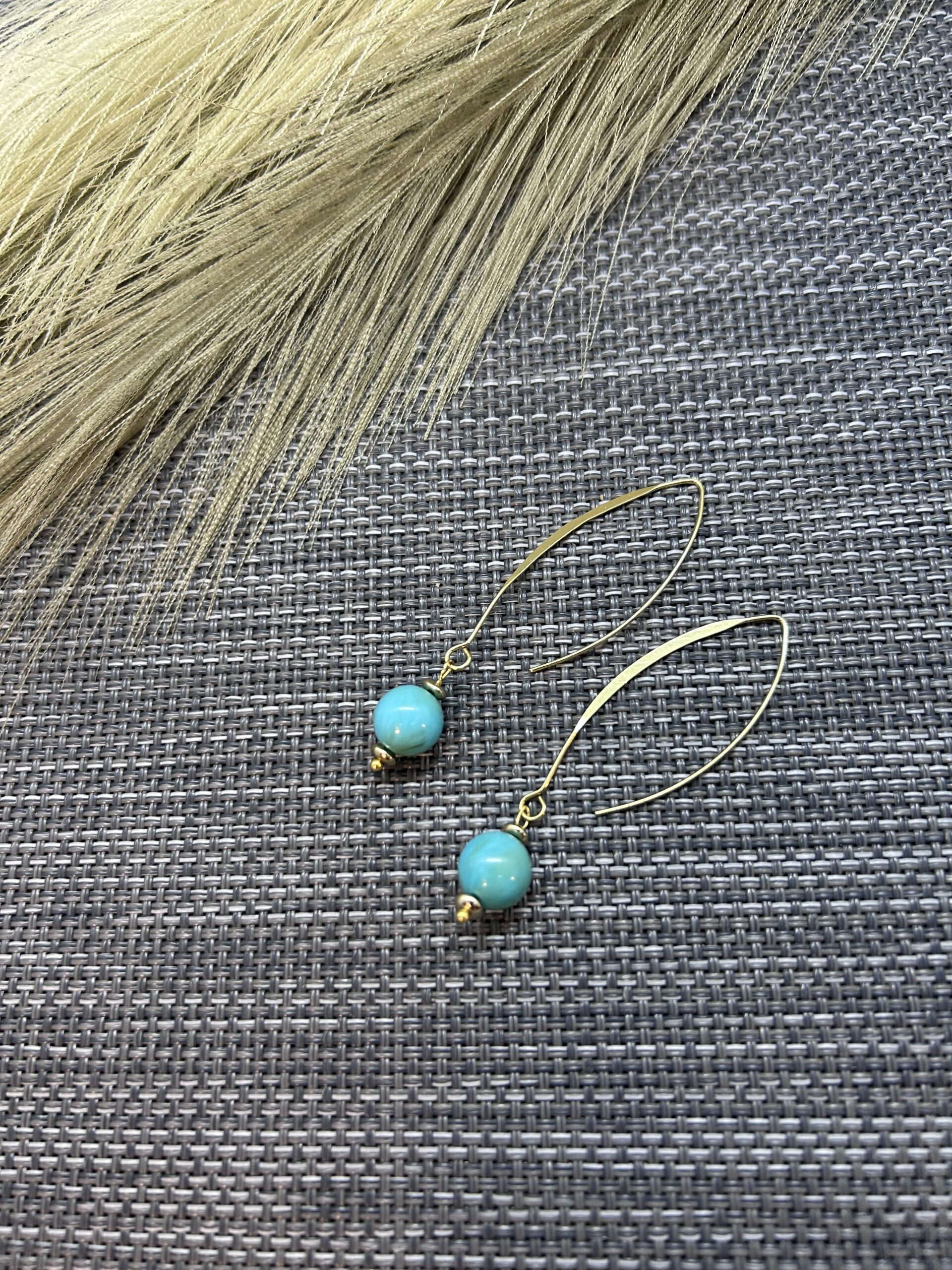 Vintage turquoise beads in new gold plated stainless steel earrings hooks