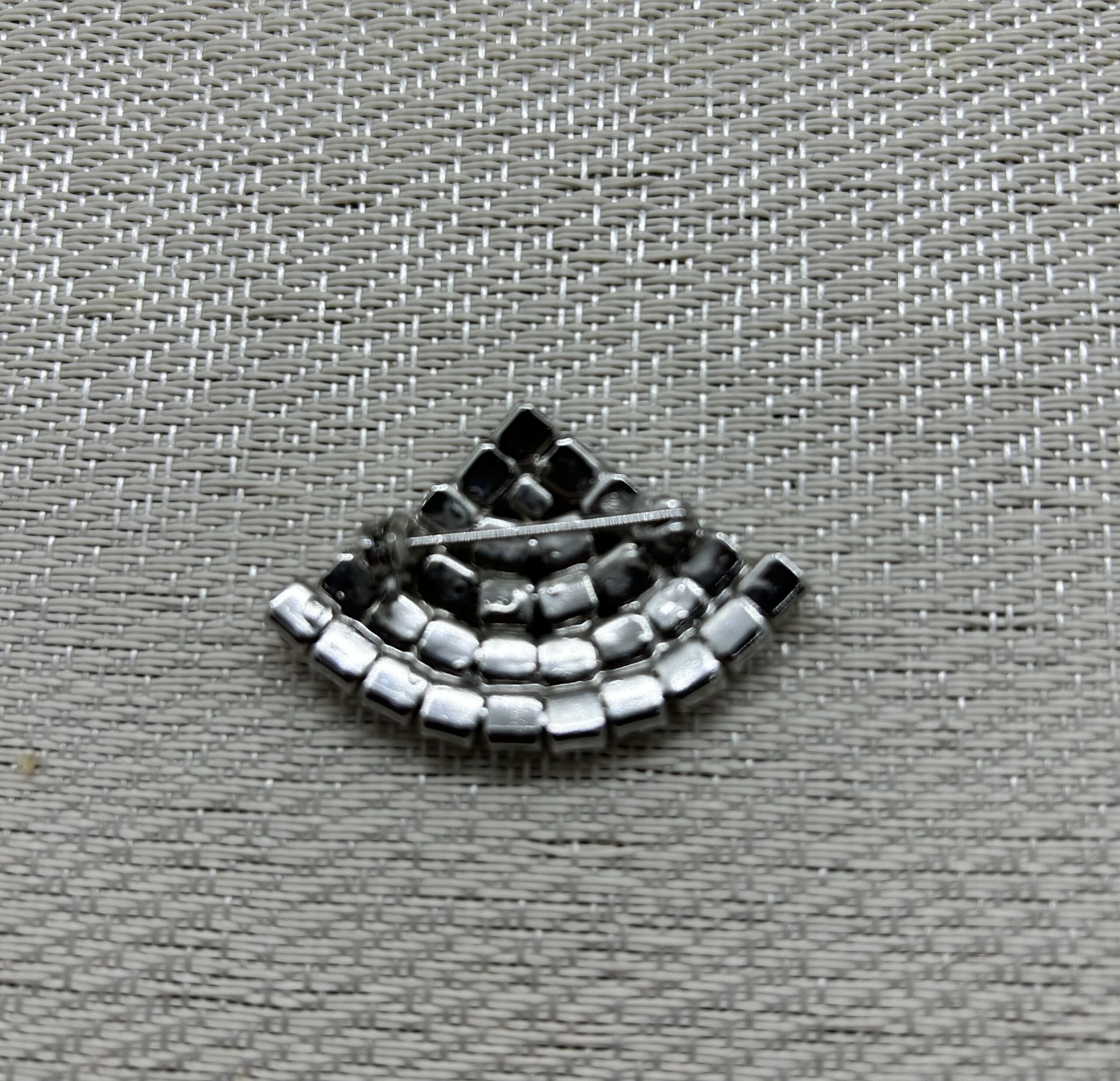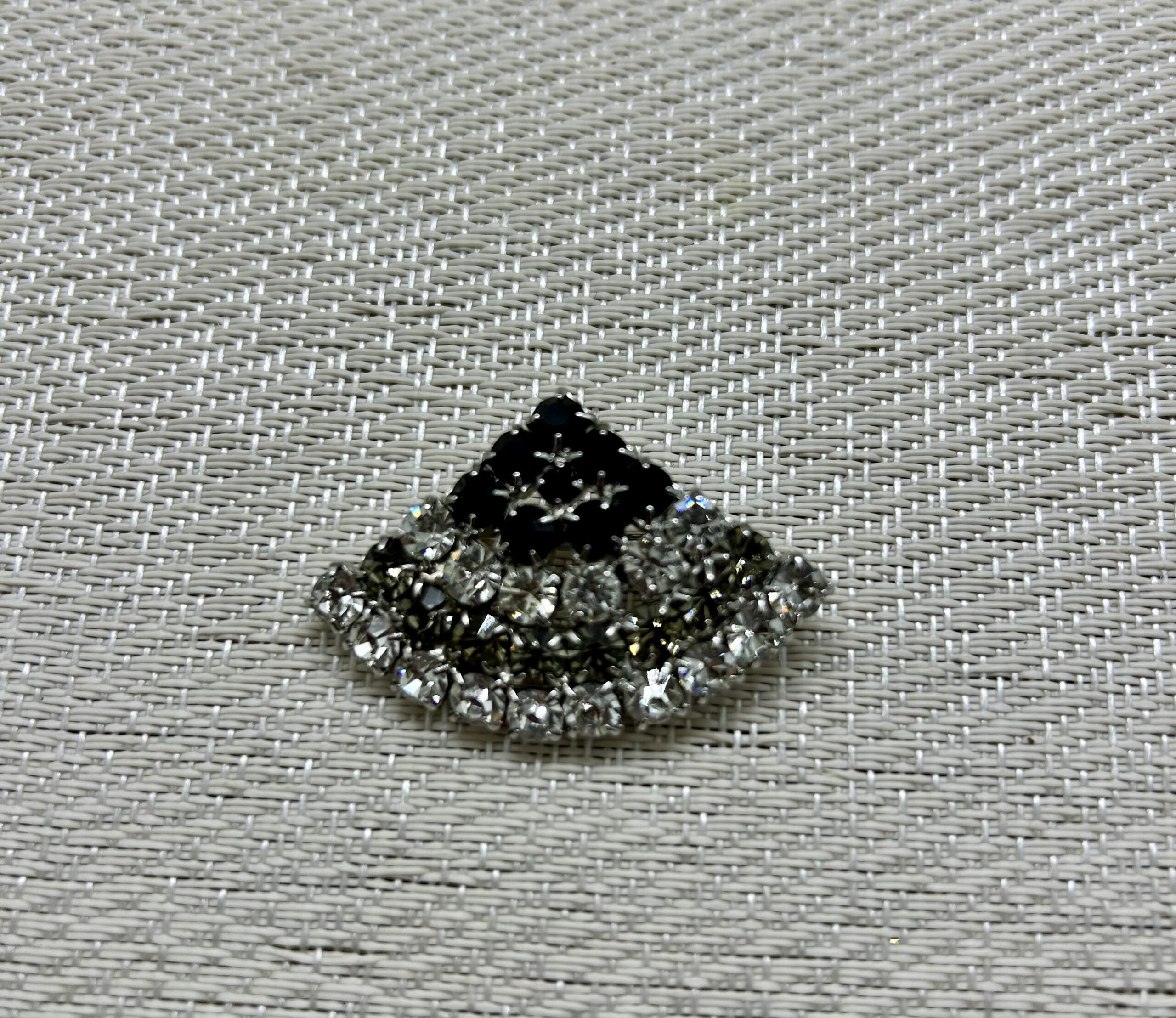 Black and clear diamanté fan brooch. In excellent condition.